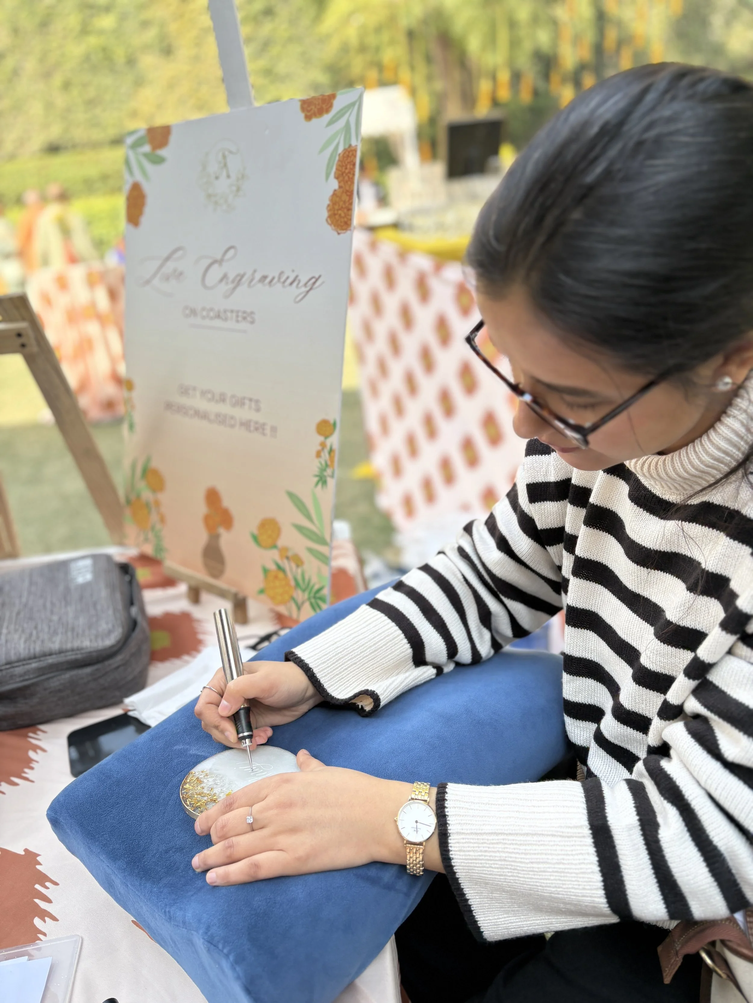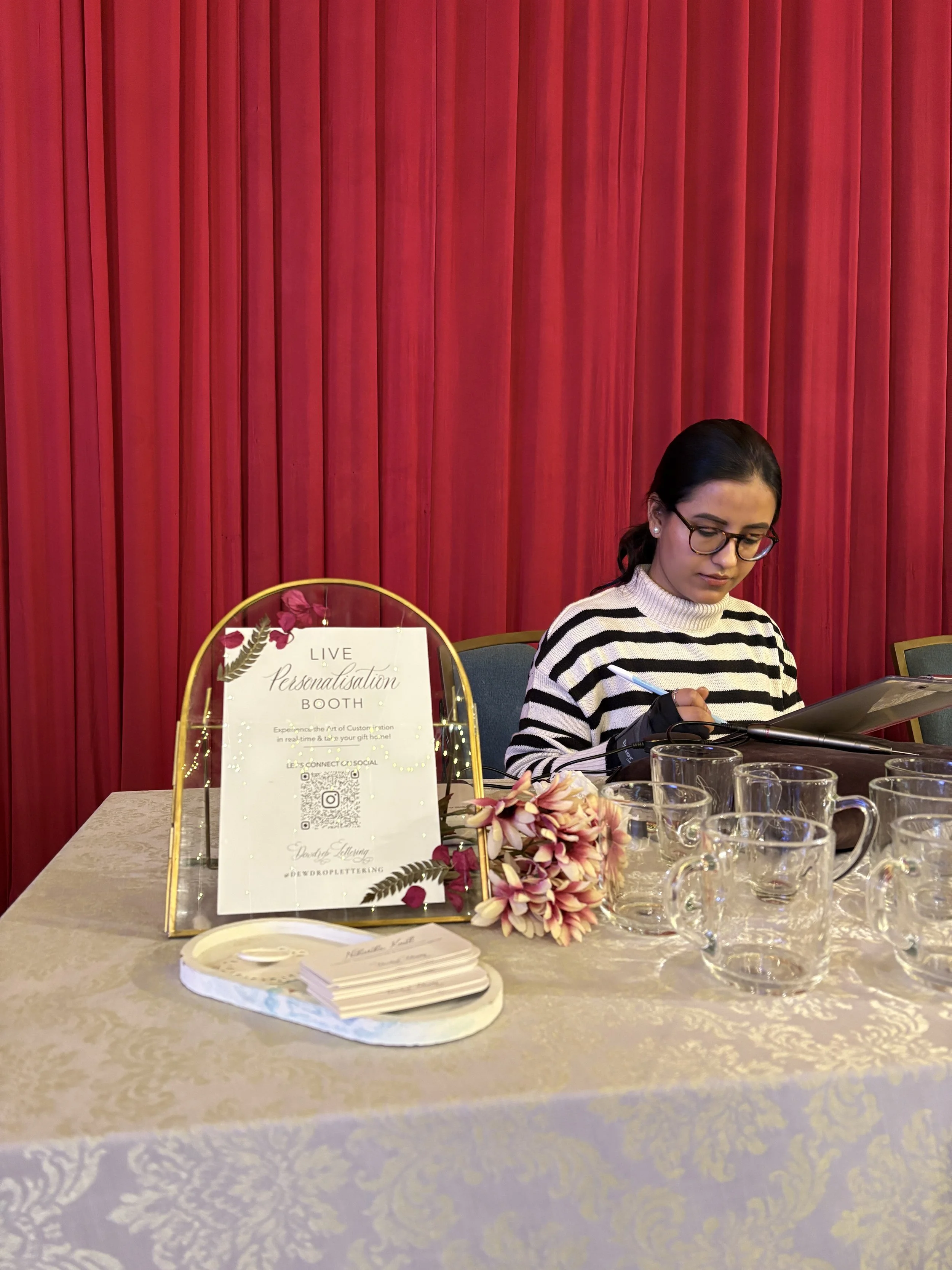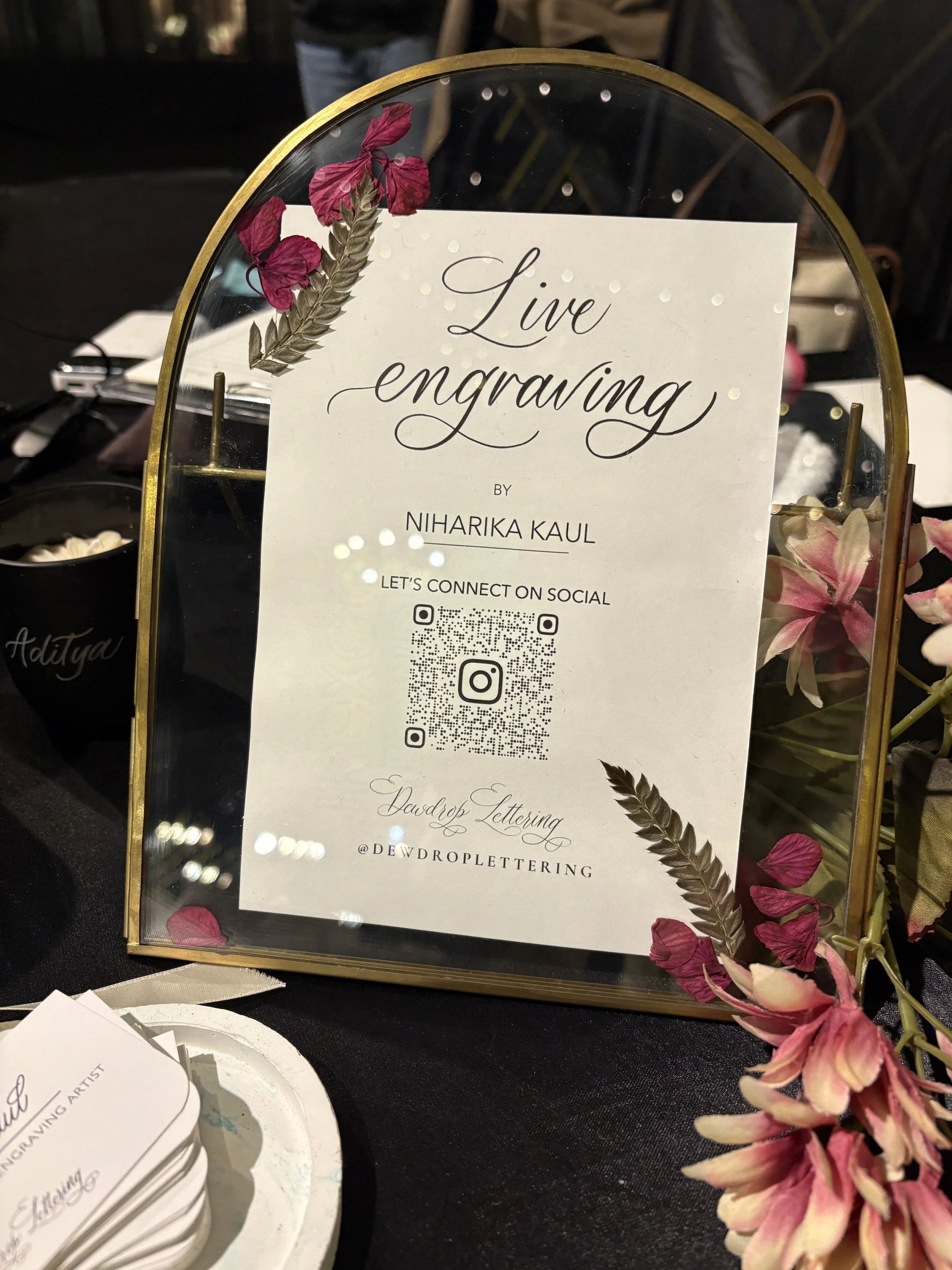 Our gallery features a curated selection of elegant calligraphy styles, unique engraving designs, and personalized creations by Niharika Kaul. Discover the beauty and versatility of hand lettering and reach out to Dewdrop Lettering for your next occasion.
